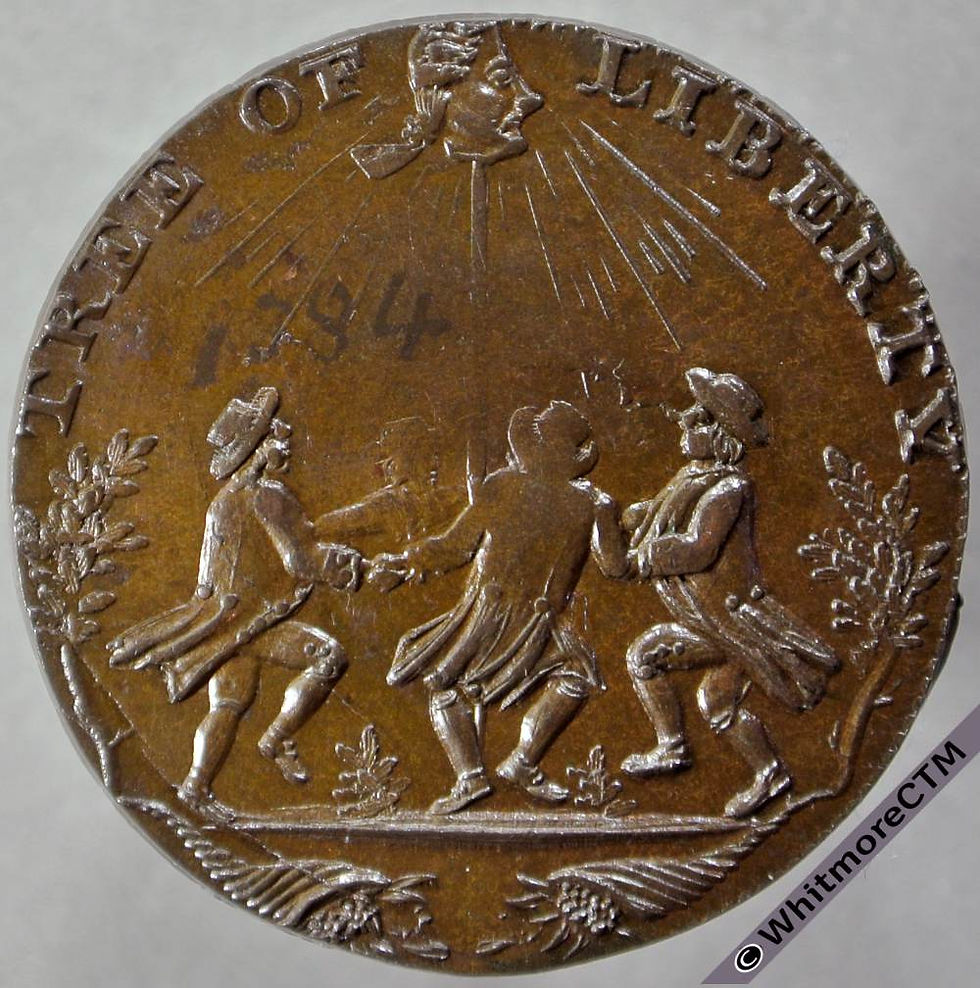 The tokens also functioned in a manner which today might seem way beyond their capacity, but in the eighteenth century there were almost no means of mass communication, and few of the poorer people were literate. The governing class, fearful of a repetition in Britain of recent events in France, attempted to suppress radical political views. Because the tokens were handled by everyone from the highest to the lowest but were beyond authoritarian control, it was possible to use them to convey criticism of the regime from the mildest to the most extreme through their designs, which everyone could understand, as well as by inscriptions aimed at the literate minority.